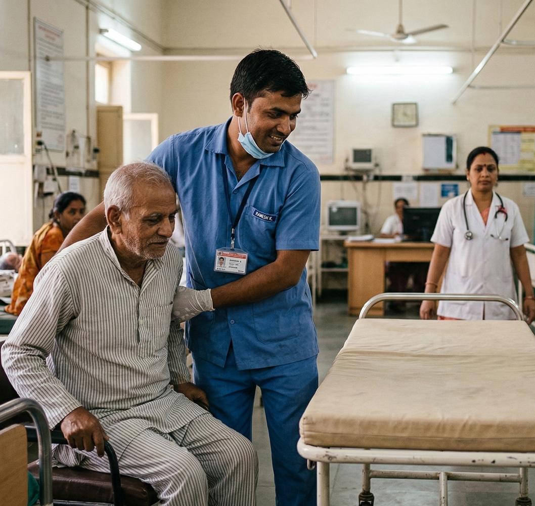 Our mission is to create a patient-first healthcare ecosystem in India by combining medical excellence with a human touch. Through modern technology, experienced professionals, and holistic care, we ensure comfort, continuity, and better health outcomes for every individual by offering reliable healthcare support, professional attendant care, skilled nursing services, dedicated patient care, and trained ward boy assistance.